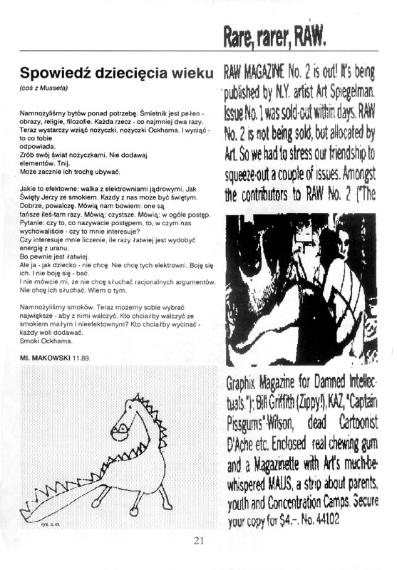 ilustracje, intensywna współpraca. ciekawe, choć efemeryczne wydawnictwo; dzieło nasze: Dorota Karaszewska, Maciej Kałkus, jeszcze kilka osób… ale głównie się tu Bolesław Rok, filozof-marksista udzielał. i ja oczywiście.